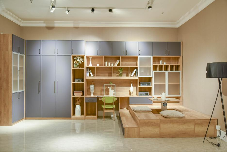 或許,你會(huì)覺得這種整體家居風(fēng)格更偏向中式,但其實(shí)它只取中式“禪”的意境,保持現(xiàn)代的生活方式,也不失為一種新的時(shí)尚。柜子作為空間里大的色塊,其設(shè)計(jì)非常重要。在全屋定制時(shí),一般選用更接近原木的淺木色板材,選購(gòu)的柜子,地板、家具都有保持同一個(gè)色調(diào)才和諧好看。