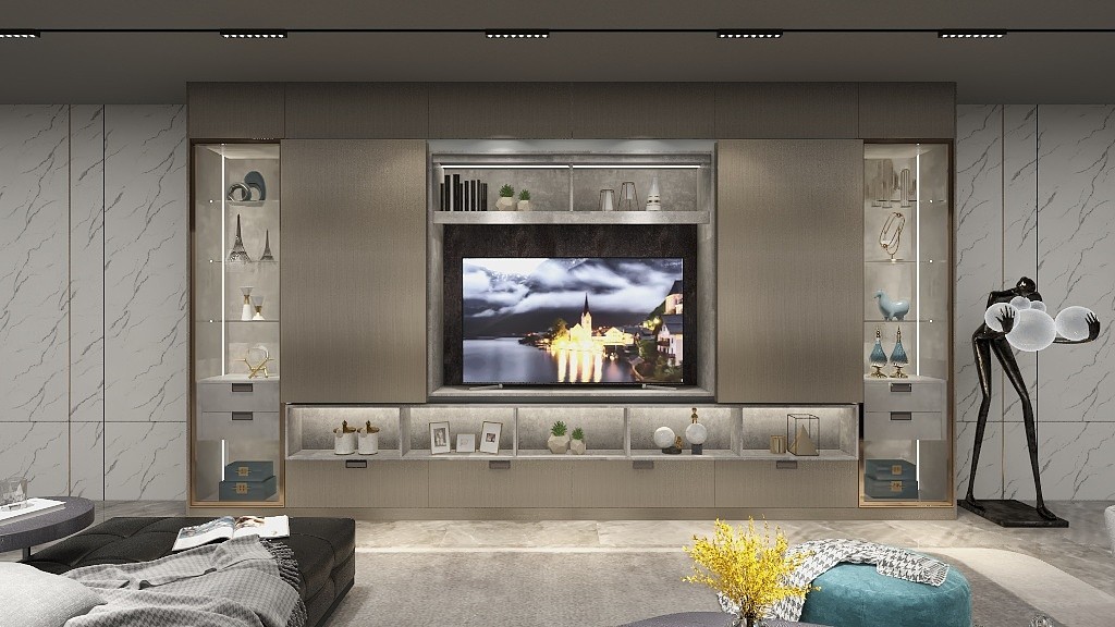領(lǐng)尚L型臥室電視柜——簡潔大氣,由一字型地柜和通頂高柜組成。地柜可設(shè)計為抽屜或拉門樣式,擴容收納空間,高柜設(shè)置開放式儲物格/展示柜,主要負責(zé)收納與裝飾;