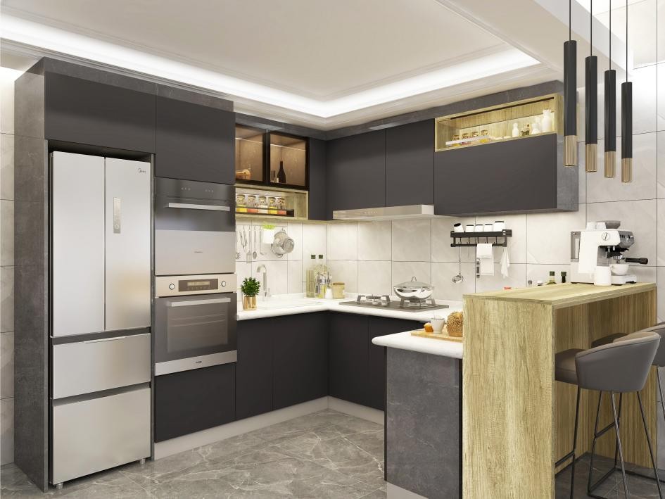 設(shè)計(jì)上,領(lǐng)尚秉承著色彩統(tǒng)一、風(fēng)格統(tǒng)一、舒適便捷的設(shè)計(jì)原則,根據(jù)每一位消費(fèi)者個(gè)性化的戶型格局及家裝需求提供現(xiàn)代化整體家居定制解決方案。以領(lǐng)尚帕尼系列櫥柜為例,原木色主色調(diào)點(diǎn)綴紅色,木制柜體搭配石英石桌面,外觀色彩搭配和諧,風(fēng)格簡(jiǎn)約大氣。