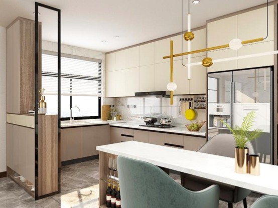 廚房是油煙重地,不要選帶造型的柜門,不好打理容易藏污納垢,而且有造型不耐看;平板門防水防潮,不褪色不滲油,無衛(wèi)生死角。