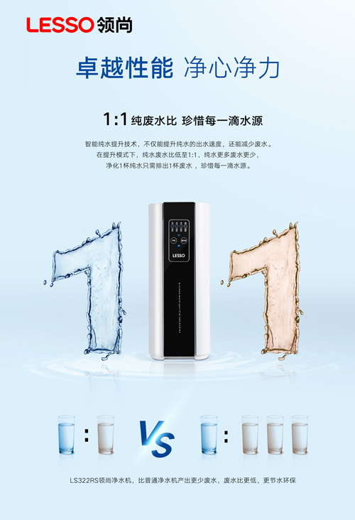 純水廢水比,低至1比1:智能純水提升技術(shù),提升純水的出水速度,減少廢水