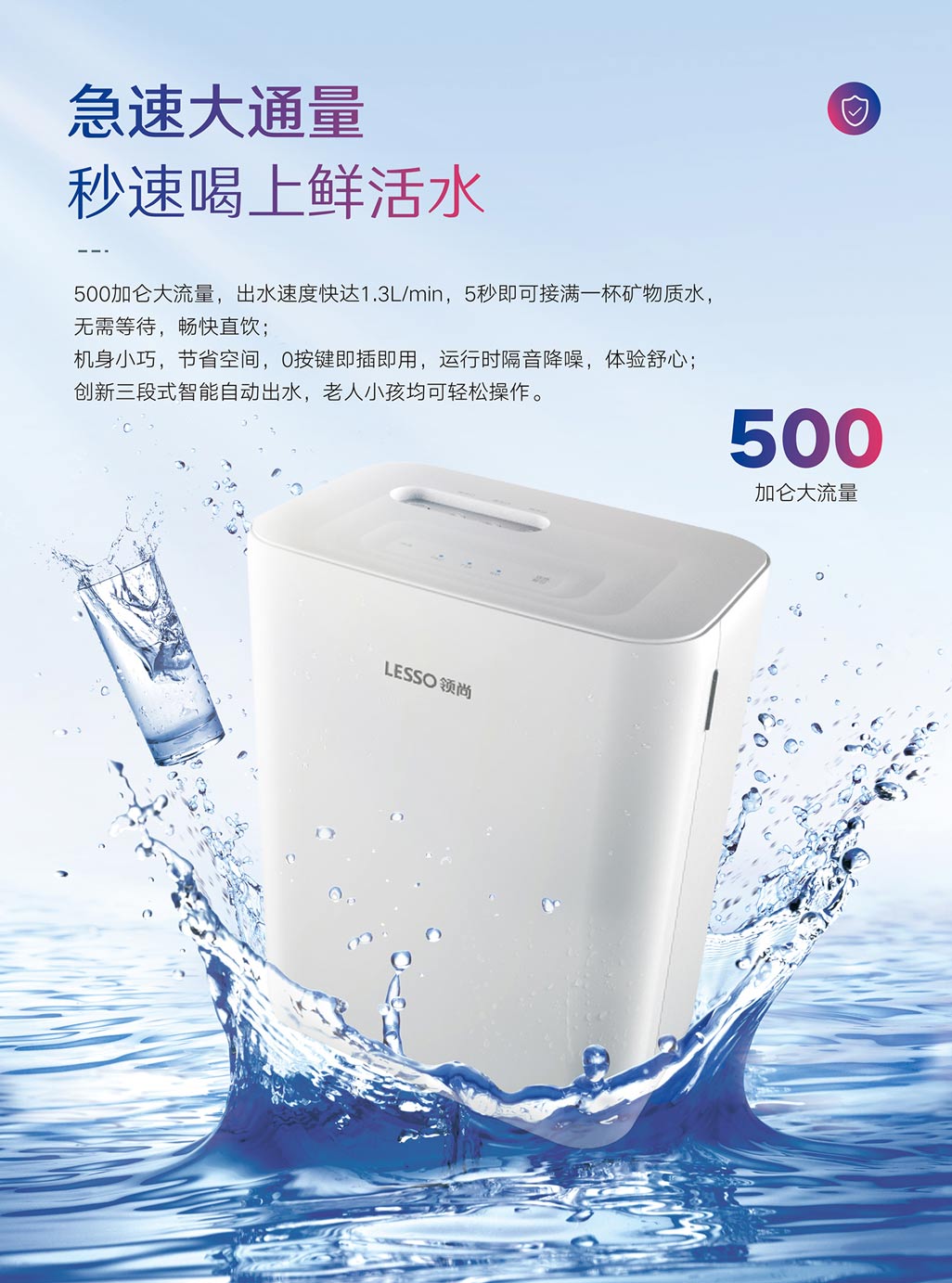 ②500G大流量,即濾即飲,5秒即可接滿一杯礦物質(zhì)水