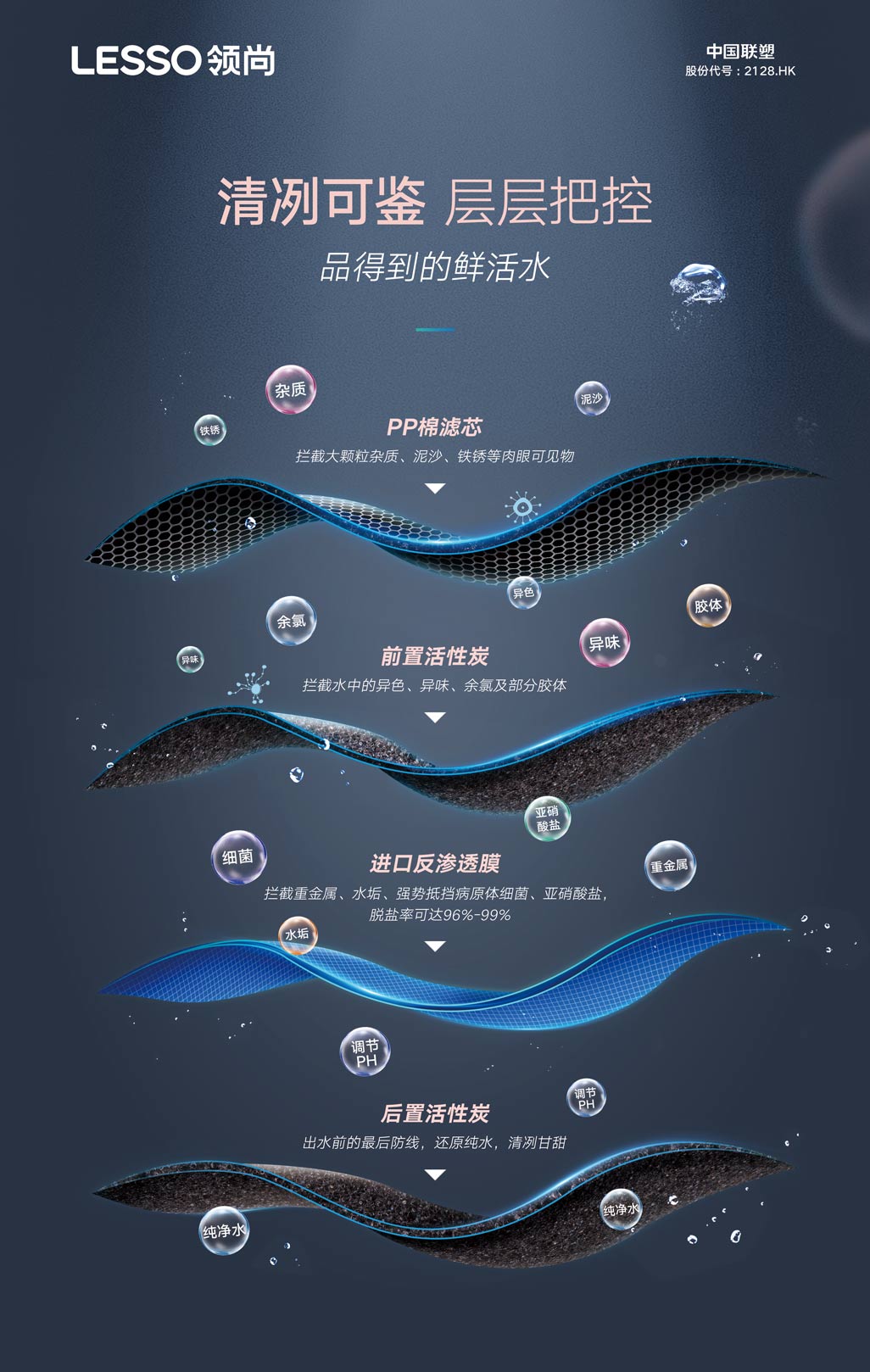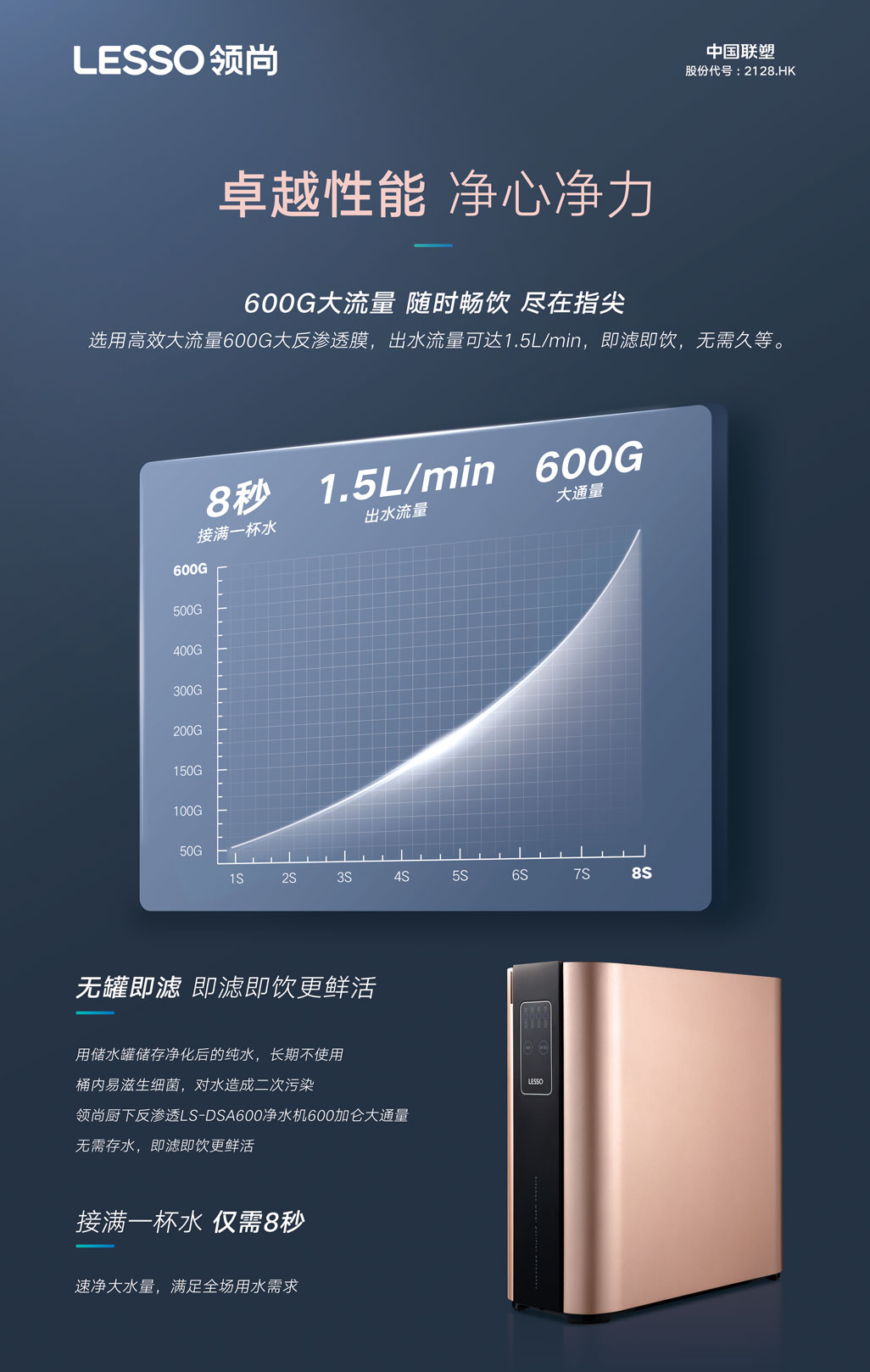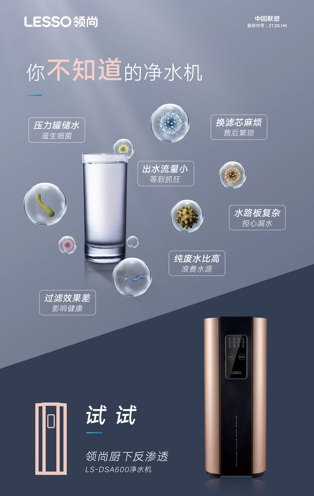 ①雙出水設(shè)計(jì),兼顧生活水與飲用水,延長(zhǎng)濾芯壽命