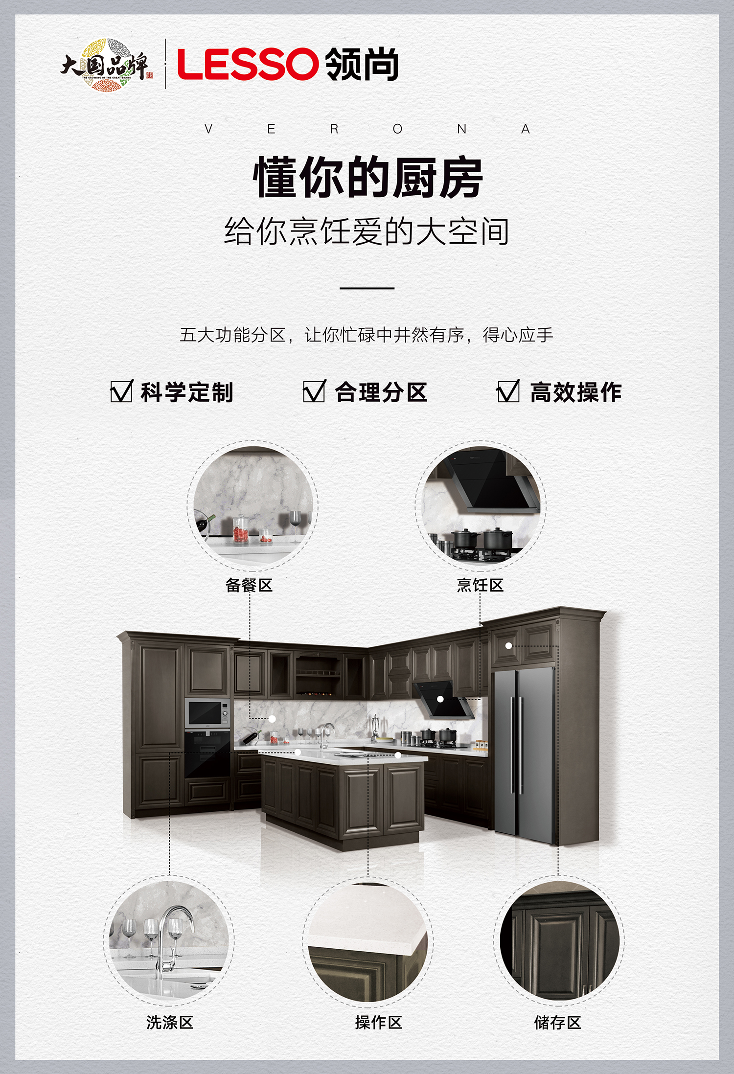 在現(xiàn)代家庭裝修中,廚房作為生活的核心區(qū)域之一,其設(shè)計(jì)與布局直接影響到居住的舒適度和烹飪效率。為了滿足不同家庭對(duì)廚房空間的需求,LESSO整體廚房櫥柜為用戶提供了一站式定制方案,幫助您設(shè)計(jì)出符合人體工學(xué)、功能齊全的廚房空間。