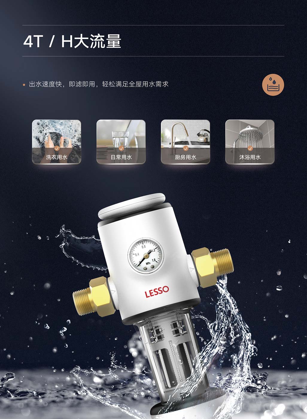 ①40微米高效精濾,食品級不銹鋼濾網(wǎng),有效阻擋紅蟲、泥沙等雜質(zhì)