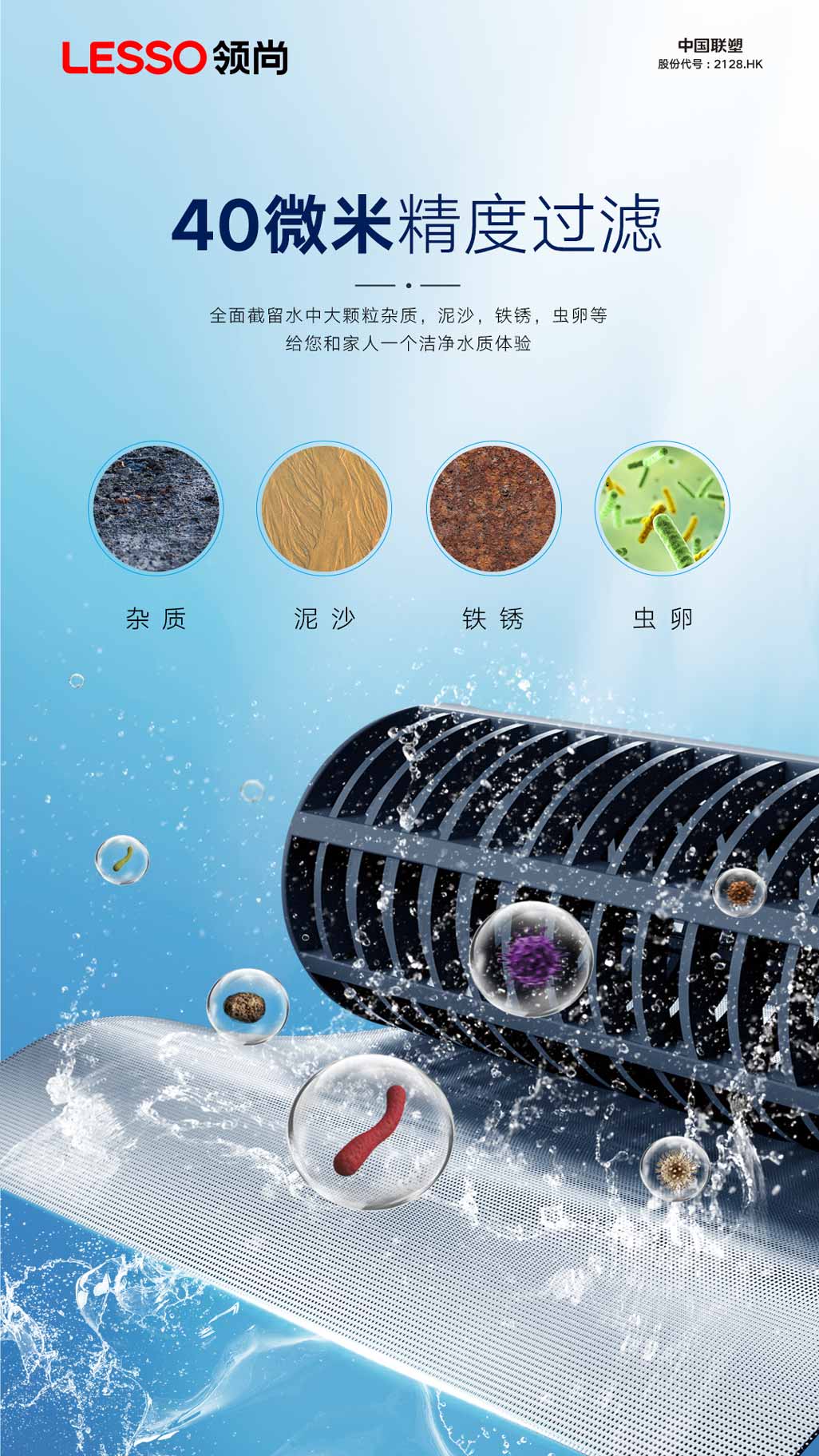 ①40微米高效精濾,食品級不銹鋼濾網(wǎng),有效阻擋紅蟲、泥沙等雜質(zhì)