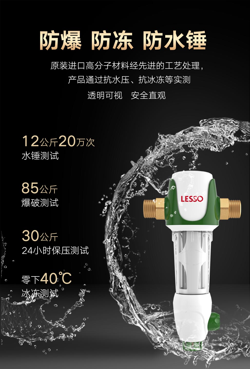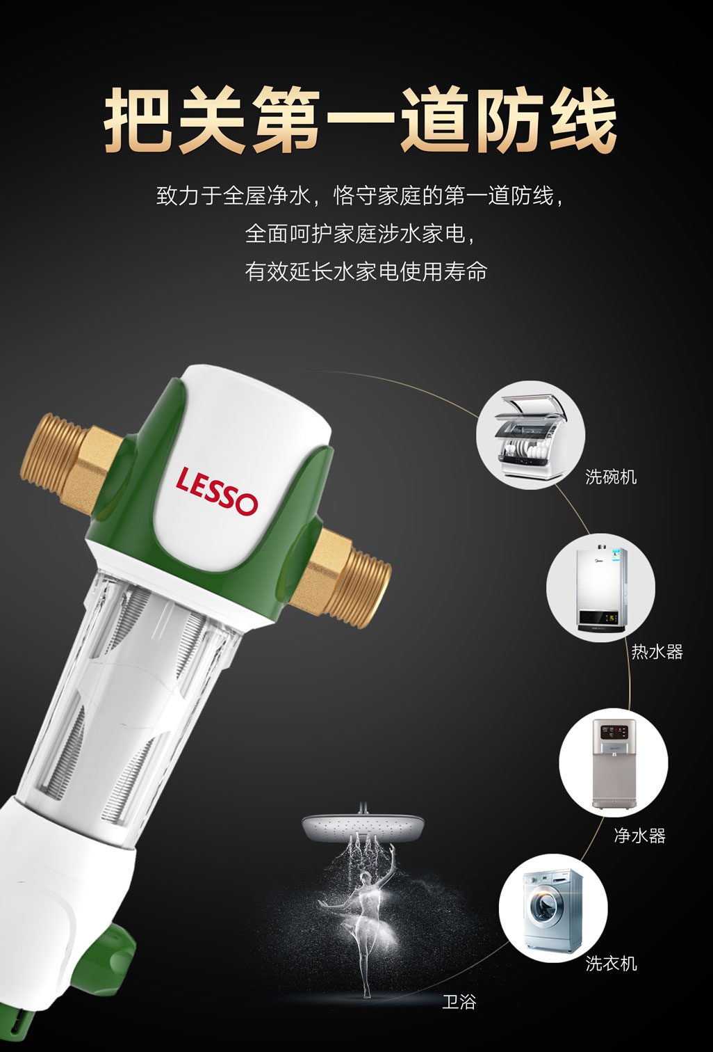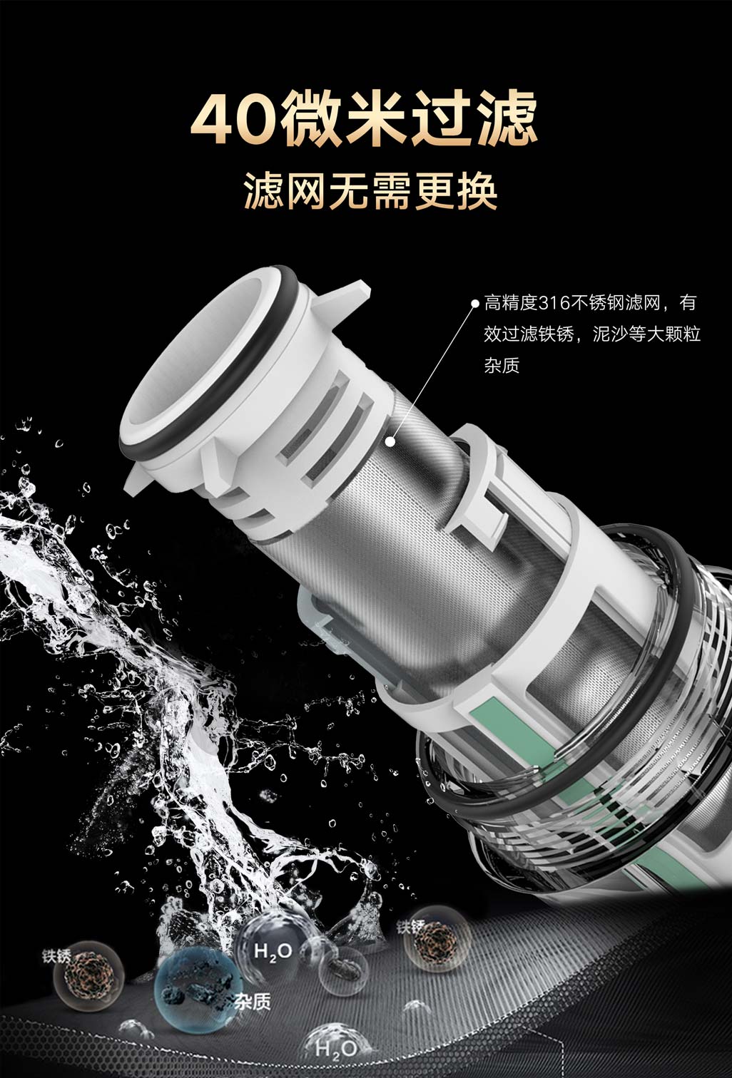 ④40微米精濾,濾網無需更換:有效去除鐵銹、泥沙等大顆粒雜質,濾網無需更換