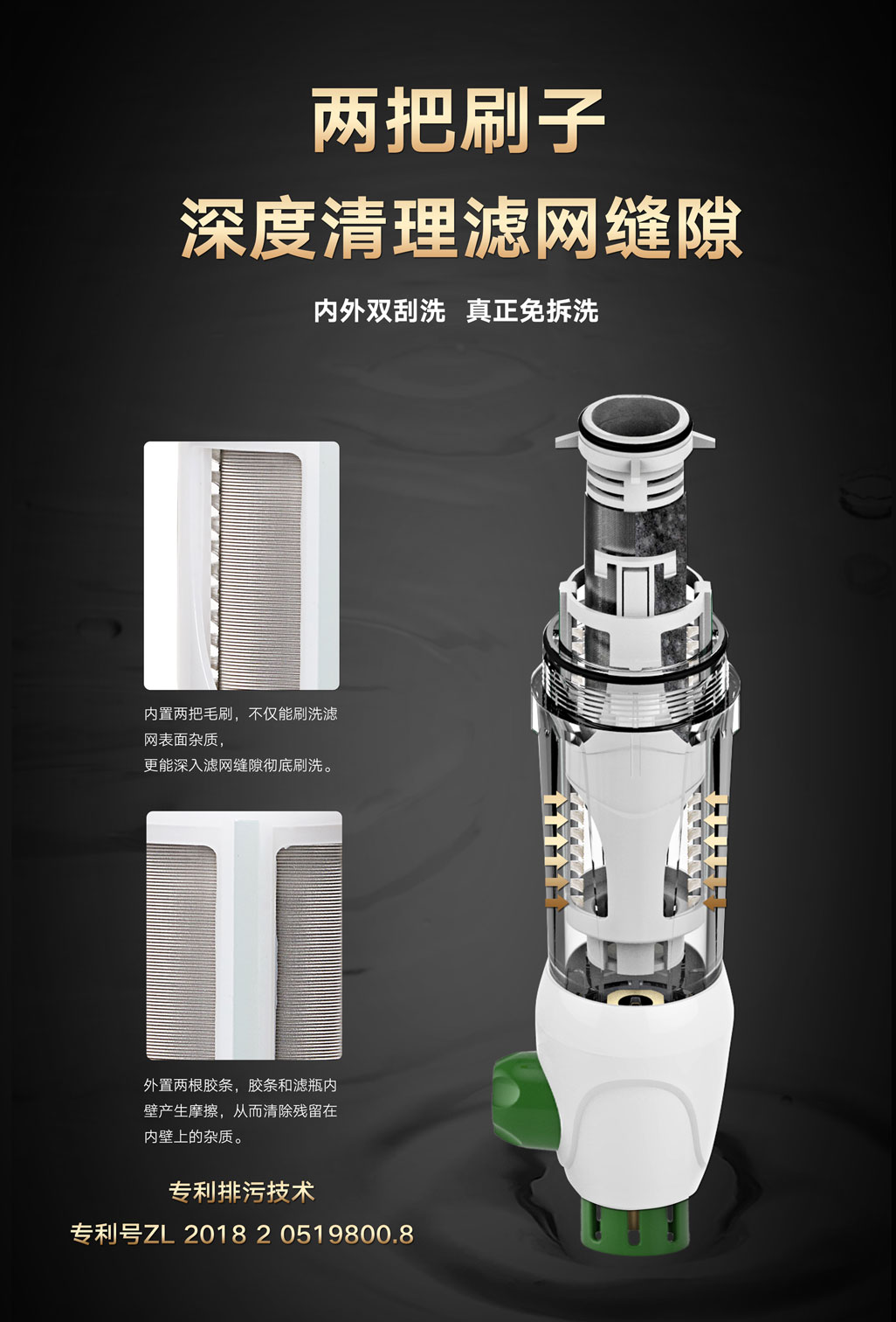 ①內外雙刮洗,真正免拆洗:內置兩把刷子,360清洗無死角,深度清洗濾網縫隙