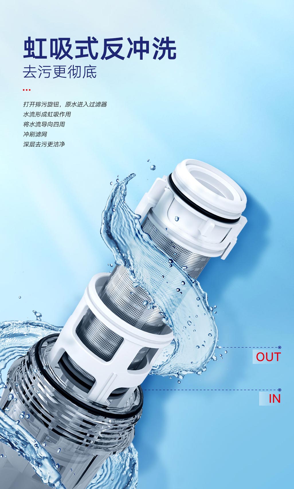 ③虹吸式反沖洗技術(shù),雙面魔刮去除濾網(wǎng)表面及濾瓶內(nèi)壁污垢,深層有效清洗濾芯,讓濾芯壽命更長